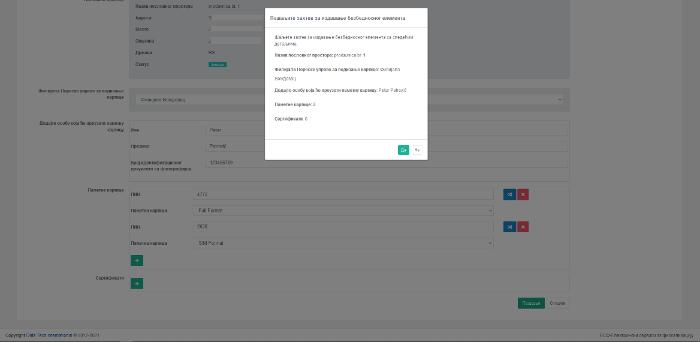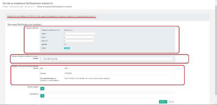 Nakon toga, u okviru iste forme, izaberite vrstu bezbednosnog elementa za izabrani poslovni prostor/prostoriju – u sekciji "