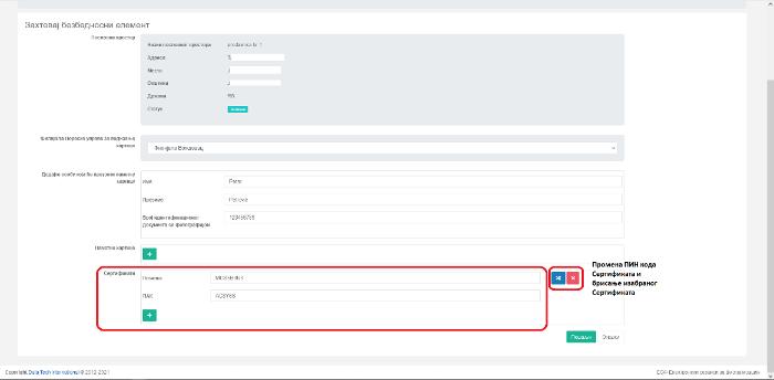 Sertifikati" – u zavisnosti koju vrstu bezbednosnog elementa nameravate da koristite na izabranom poslovnom prostoru/prostoriji.
